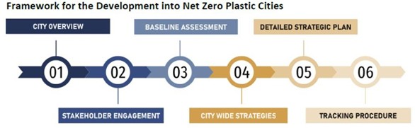 A Net Zero Plastic City is an urban area that reduces plastic waste generation and offsets any residual leakage by recovering an equivalent amount through recycling, reuse, or other methods—resulting in zero net plastic pollution.